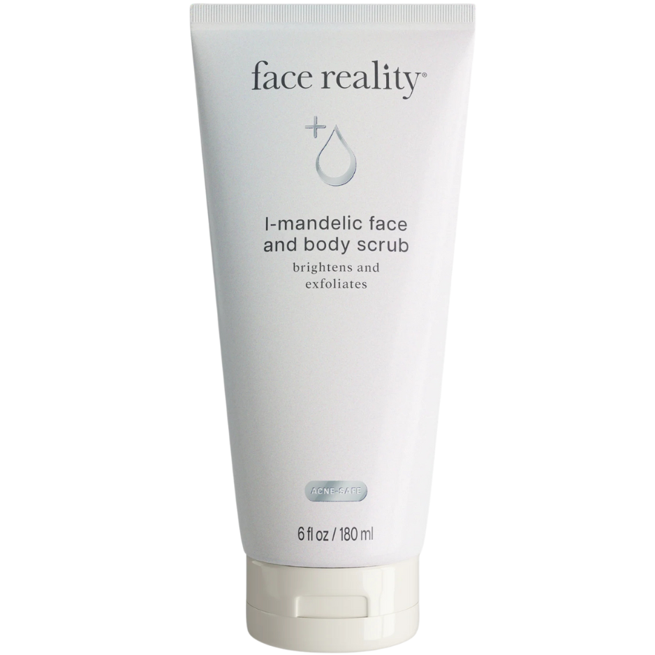 This gentle brightening scrub utilizes the power of mandelic acid along with cellulose beads to buff away skin impurities and improve skin tone and texture. It helps fade pigmentation, smooth keratosis pilaris, and effectively clear fungal folliculitis. Added grapeseed extract provides anti-inflammatory benefits and antioxidant support to heal breakouts and boost skin health.